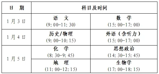 适应性演练测试时间为2025年1月3日-5日,具体安排如下: